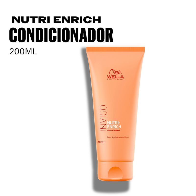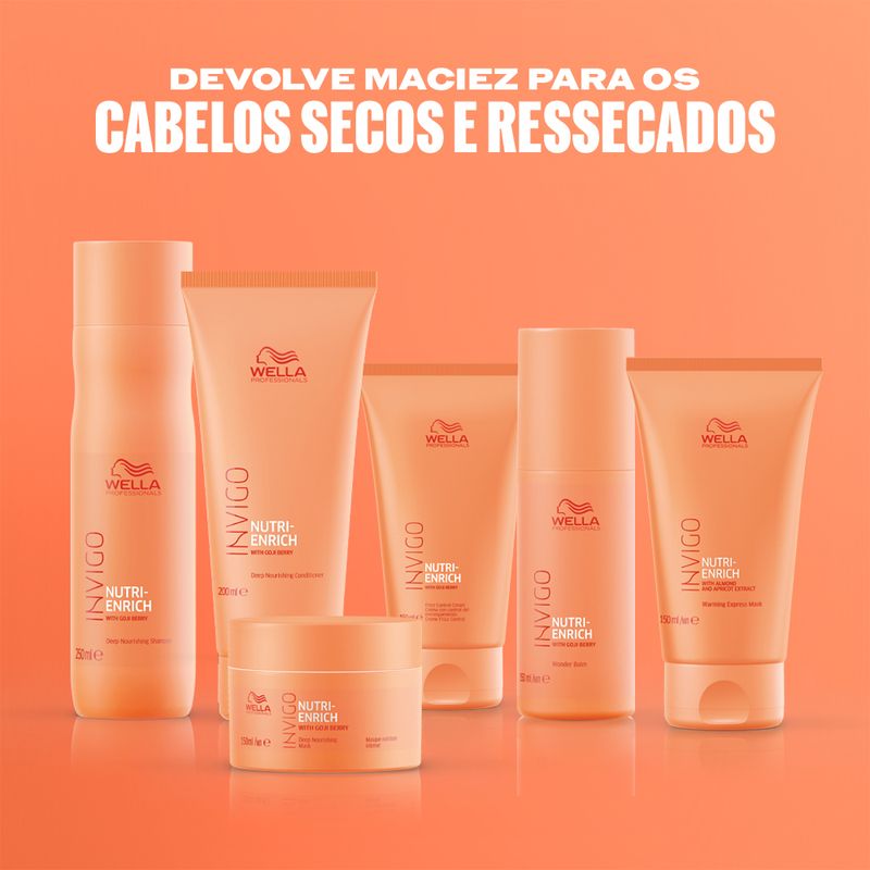 Condicionador para cabelos secos, ressecados ou quimicamente tratados. Wella Professionals Invigo Nutri-Enrich Conditioner desembaraça os fios enquanto hidrata e nutre. Ele é rico em ativos que melhoram a qualidade do cabelo e suaviza sua superfície para que fique com um toque macio.