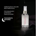 Sérum reparador noturno. Proporciona hidratação imediata para dar volume ao cabelo seco e danificado. Penetra durante a noite, ajuda a reparar a cutícula capilar de dentro para fora; a aparência e toque dos fios é revitalizado. Formulado com ácido hialurônico e niacinamida (vitamina B3). Resulta em um cabelo mais maleável e flexível para estilizar. Modo de aplicar. Utilizar durante a noite. Aplicar de 3 a 5 pumps na palma da mão, distribuir pelo cabelo seco ou húmido.